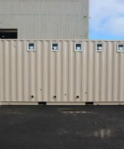 Our shipping container ablution units come in a range of sizes and can be fitted with toilets, urinals, showers, change rooms, wash basins, benches, lockers, fans and mirrors. Choose from a simple 10 foot shipping container with a single toilet, urinal and basin, right up to a 40 foot container complete with toilets, urinals, showers, mirrors and change rooms. A popular design divides a 20 foot shipping container neatly in half with two separate doors so that male and female facilities are available in the one container.